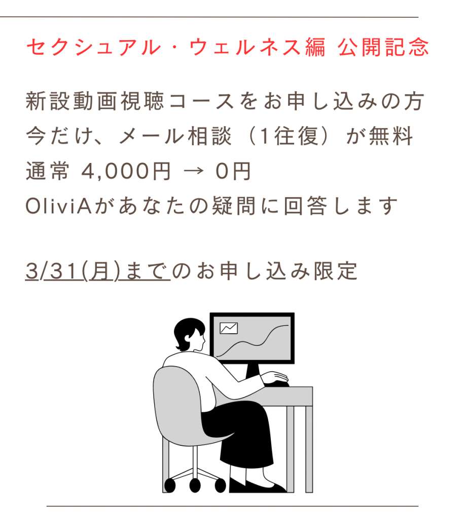 2. 講師OliviAへの「個別メール相談(1往復)」無料提供
