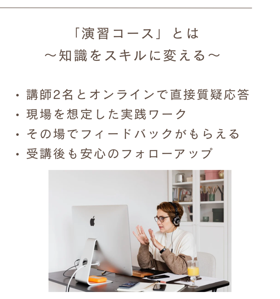 リニューアルにあたり、オンラインでも対面講座以上の深い理解が得られるカリキュラムを構築しております。